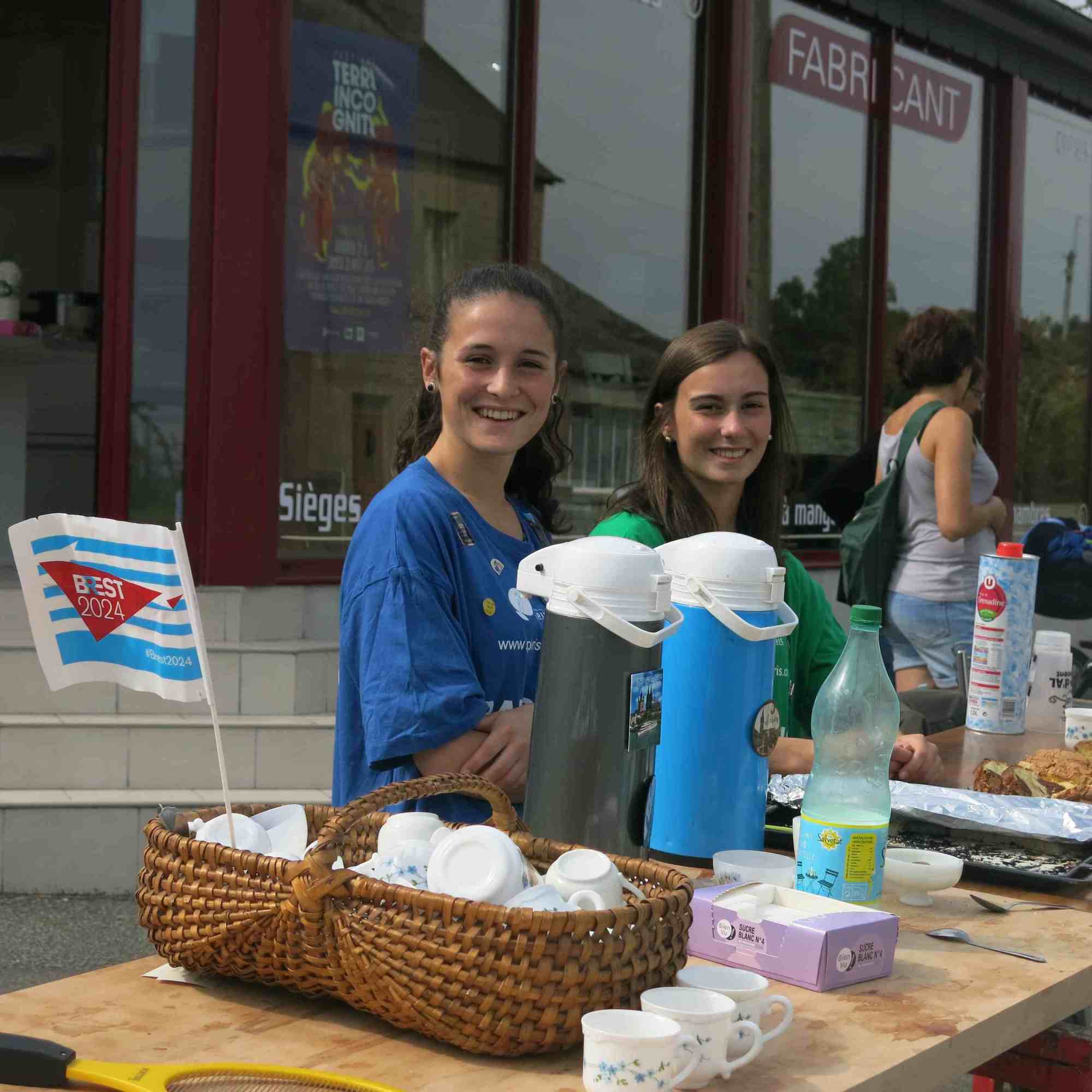 Es ist kaum zu glauben, aber ein paar junge Französinnen betreiben hier einen kleinen Stand und bieten den müden Randonneuren Kaffee, Kekse, Schokoriegel usw. an.