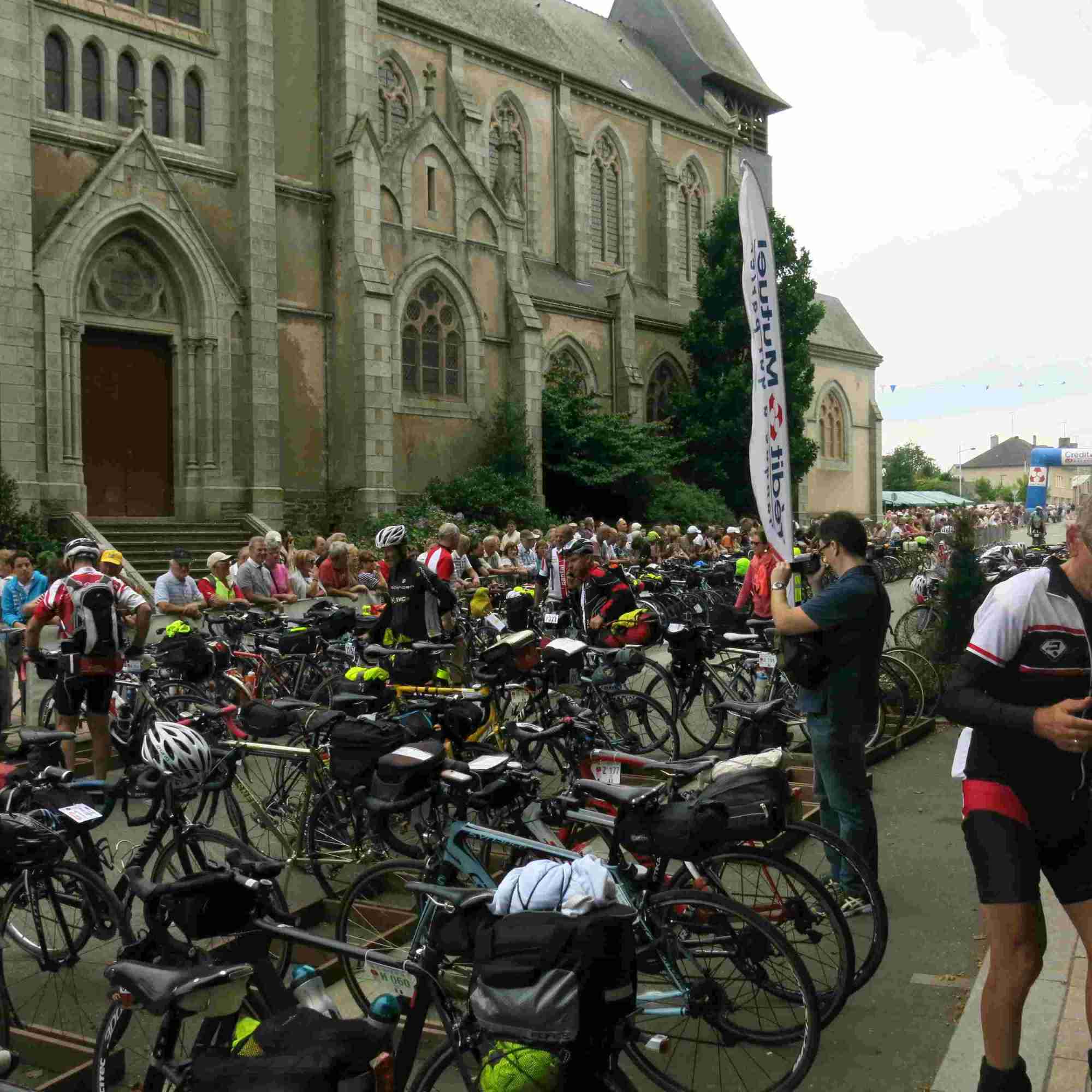 Fougeres ist ein größerer Ort, war auch in diesem Jahr Etappenort bei der Tour de France. Auf den Straßen herrscht recht dichter Verkehr, es geht in einigen Schleifen hin zum Gymnasium, wo wir nach 310 Kilometern kurz nach 11 Uhr den Kontrollpunkt erreichen und zügig unseren Stempel abholen. Das Zeitlimit liegt bei 15:04 Uhr, wir haben eine Stunde herausfahren können und nunmehr 4 Stunden Zeitpuffer. Aber auch hier halten wir uns nicht lange auf, wollen keine Zeit in der Schlange an den Versorgungsständen verlieren.