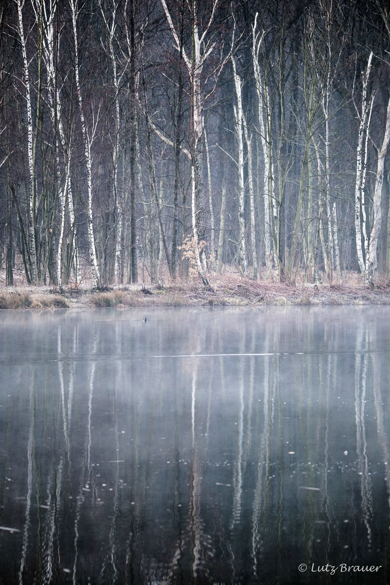 Unwirtlich, beinahe bedrohlich wirkt der Wald, eisig ist die Luft und geheimnisvoll ist der Sog der Tiefe unter der spiegelnden Wasseroberfläche.