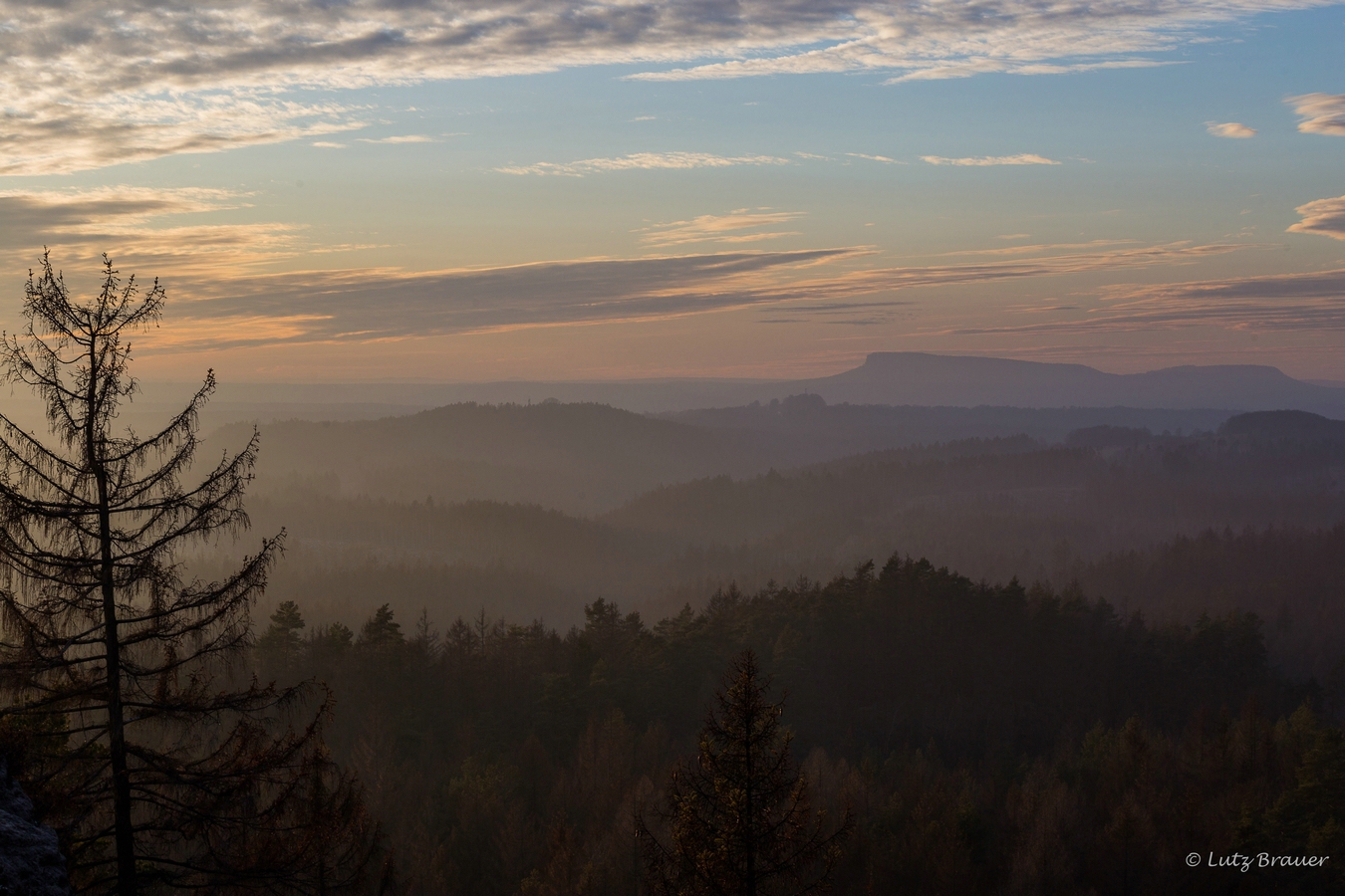 Als wir oben ankommen, bietet sich uns ein unvergessliches Schauspiel- die Landschaft im Licht der untergehenden Sonne – einfach nur märchenhaft – und es stellt sich die ernste Frage – Knipsen oder Schauen und ganz tief aufnehmen – am Besten Beides…