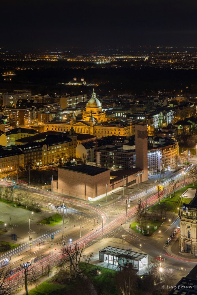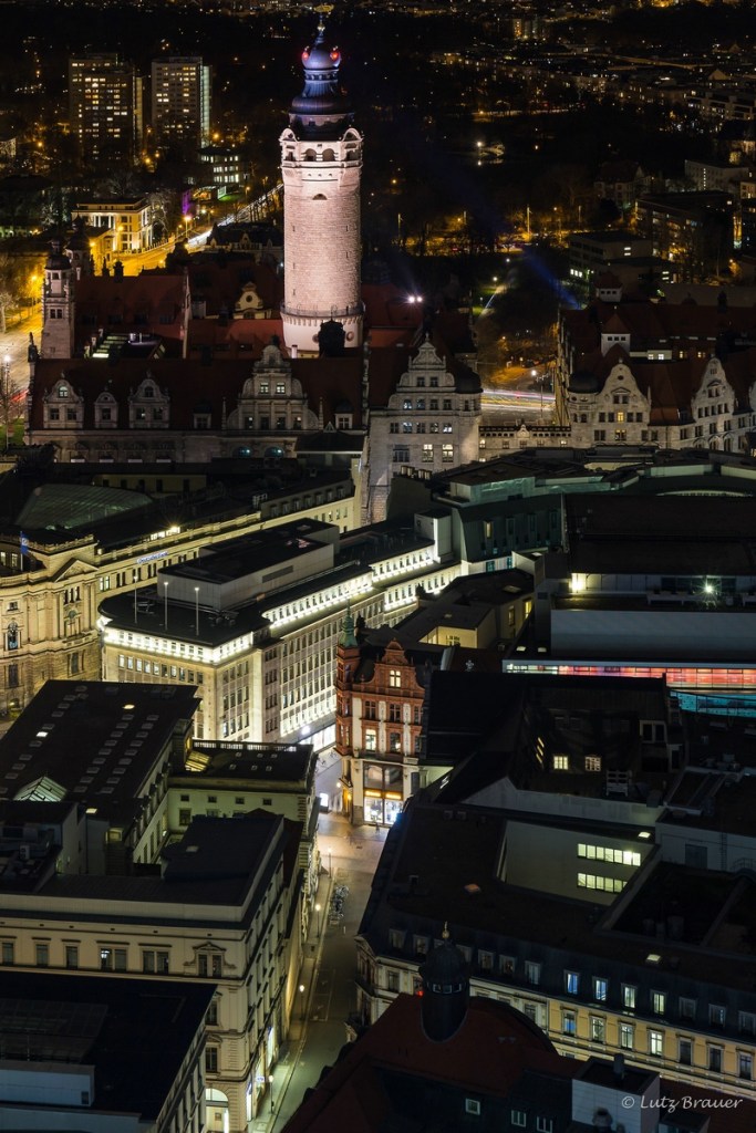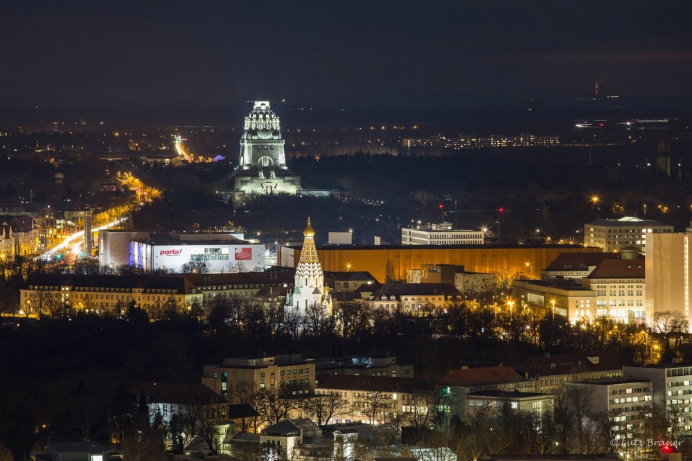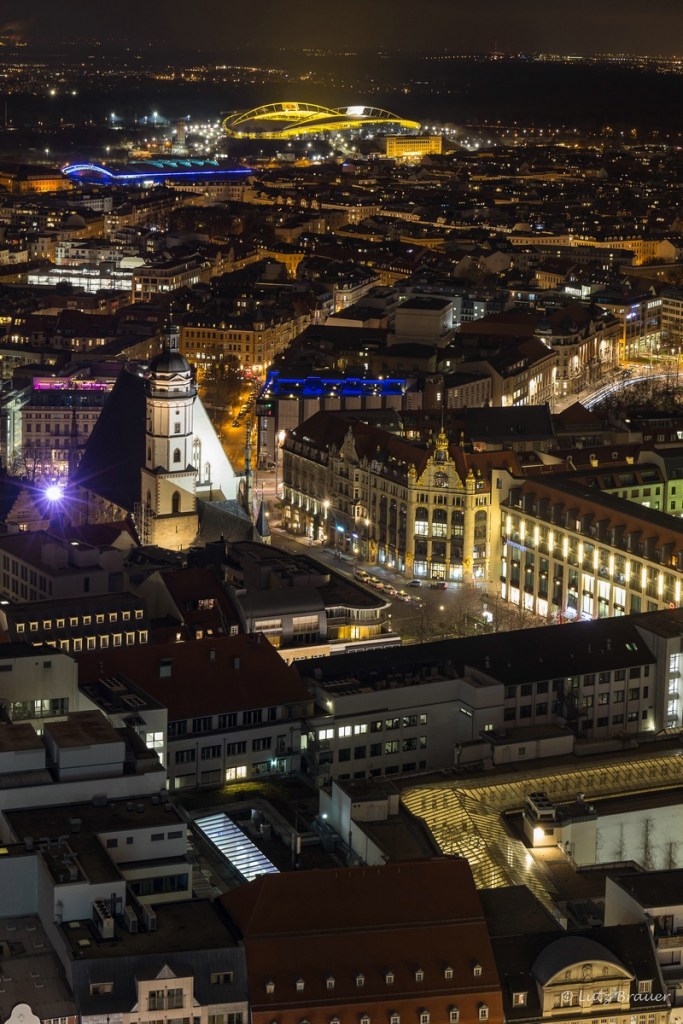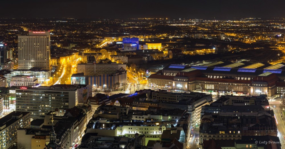 Da dem Besuch aus der Bundeshauptstadt mal eine große Stadt gezeigt werden soll 😉 stehen wir mit ein paar Snacks und der Fotoausrüstung beladen nach Jahren wieder einmal oben auf der Aussichtsplattform des „Uniriesen“ oder jetzt MDR-Hochhauses. Die Dame am Glühweinstand macht ihren Jahresumsatz heute vermutlich mit uns, ansonsten ist dieser ausgezeichnete Aussichtspunkt erstaunlich dünn besucht.