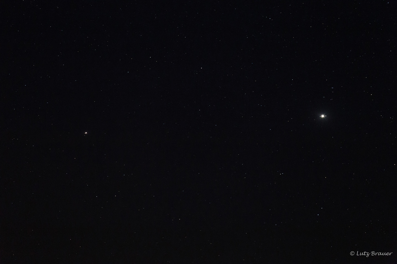 Die Zeit vergeht solchermaßen sehr schnell. Und irgendwann verblassen die Wolken, nur der Komet steht nun deutlich sichtbar am Nachthimmel. Und im Süden grüßen Jupiter (heute mit zwei sichtbaren Galileischen Monden) und Saturn herüber.