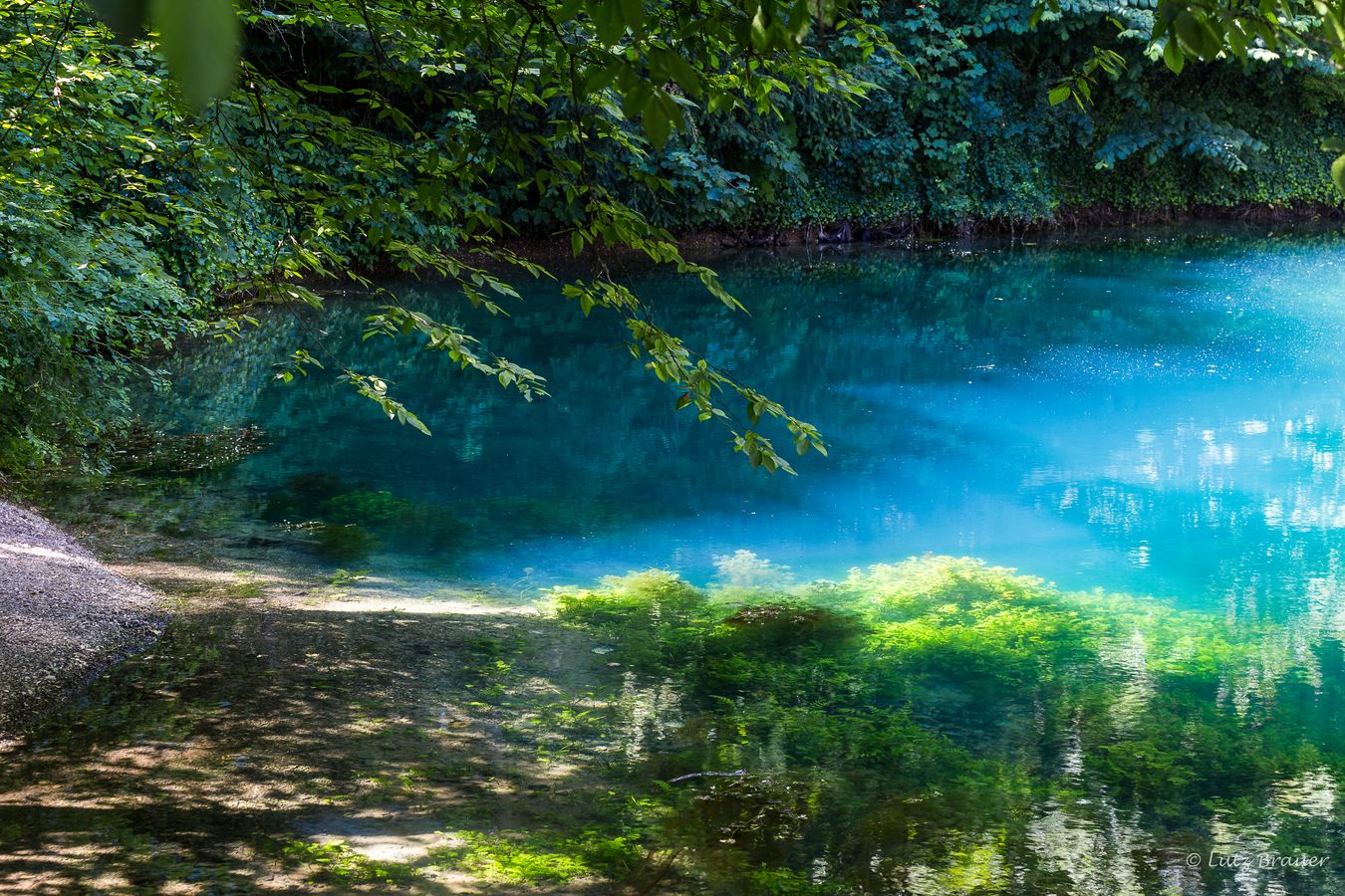 „Zuunterst auf dem Grund des Blautopfs saß ehmals eine Wasserfrau mit langen fließenden Haaren. Ihr Leib war allenthalben wie eines schönen, natürlichen Weibs, dies eine ausgenommen, dass sie zwischen den Fingern und Zehen eine Schwimmhaut hatte, blühweiß und zärter als ein Blatt vom Mohn…“ – Mörikes schöne Lau, wo sonst soll sie wohnen als hier…