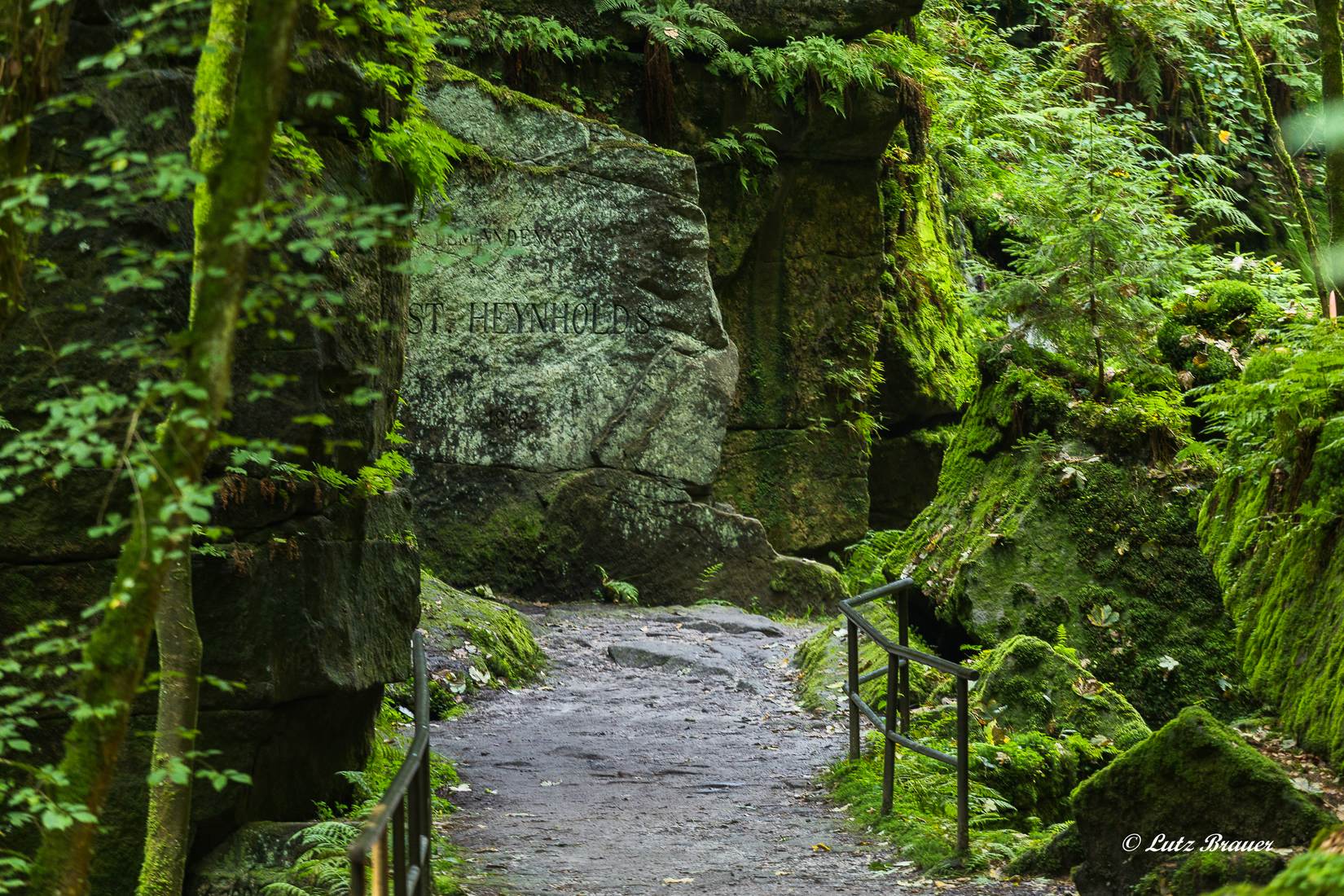 Liegt es an diesem wechselhaft feucht-warm-sonnig-trüben Schaukelsommer, dass es uns so vorkommt, als sei es in den Schluchten der Sächsischen Schweiz besonders grün. Nichtsdestrotrotz sind die im Winter wasserführenden Bachläufe ausgetrocknet, aber das Grün ist allgegenwärtig und üppig wie lange nicht mehr.