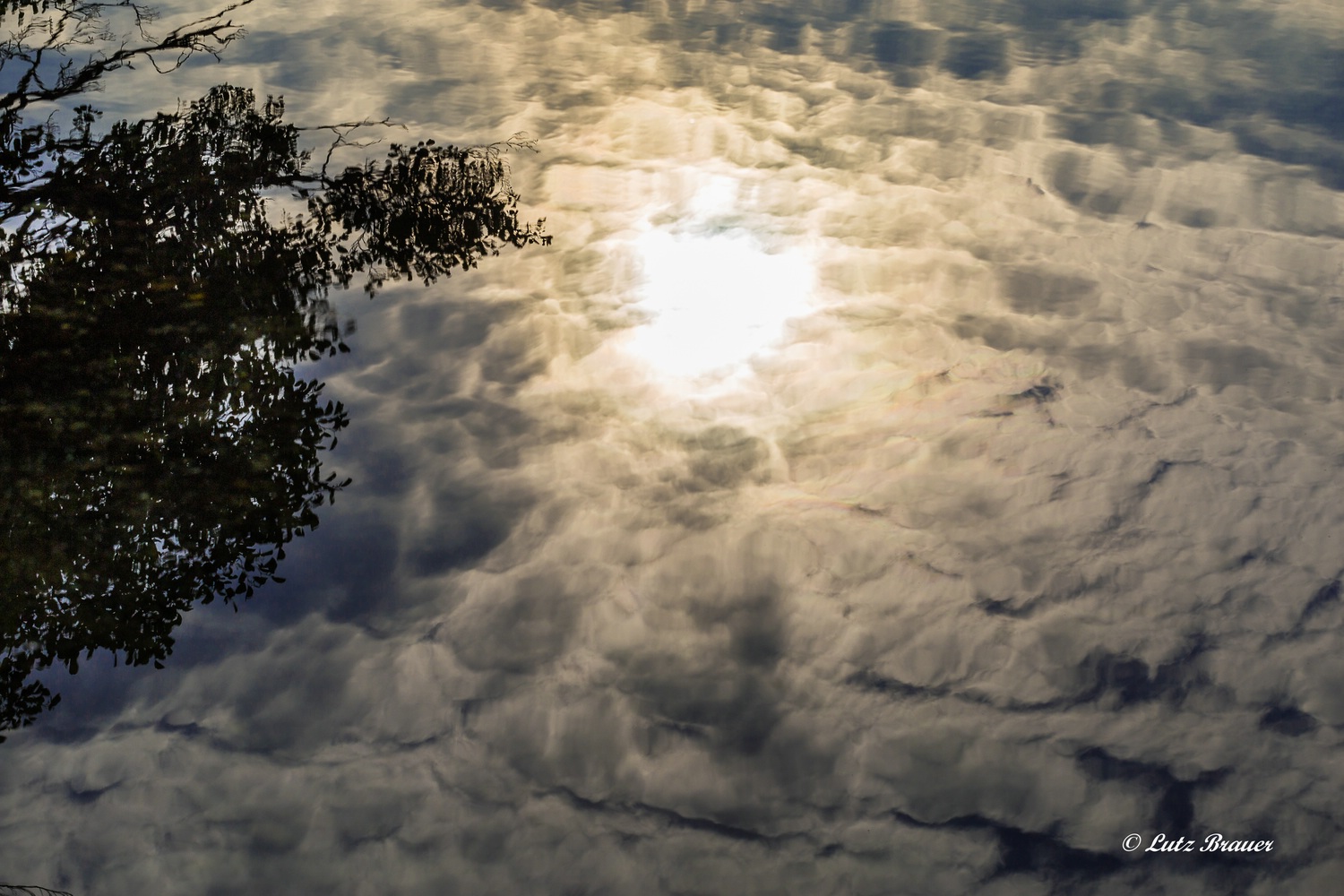 Der Wind legt sich, die Wasseroberfläche wird ganz still, unbewegt, das letzte Licht der Sonne und das Spiel der Wolken lassen Oben und Unten schwinden.