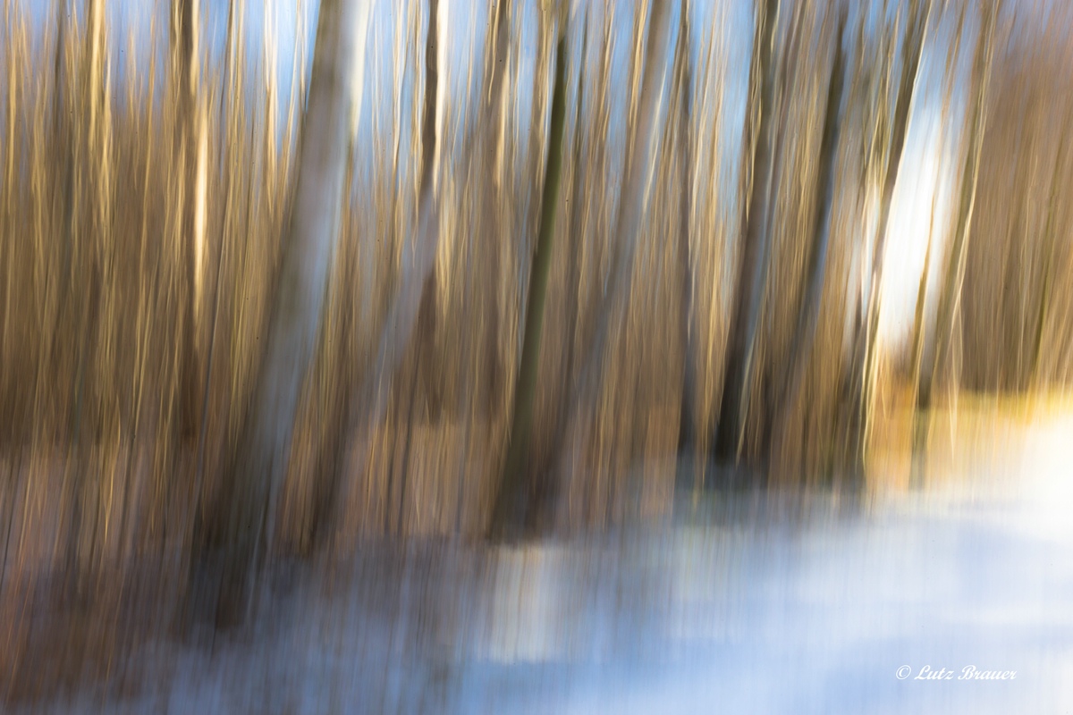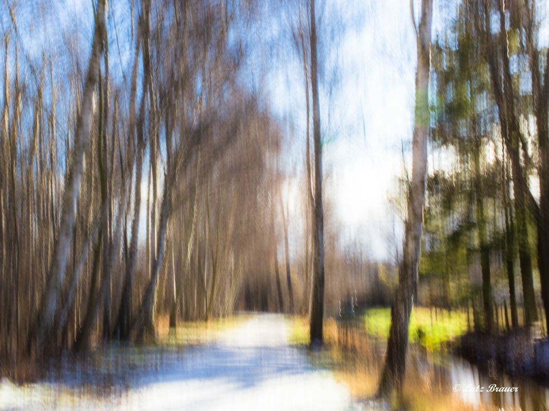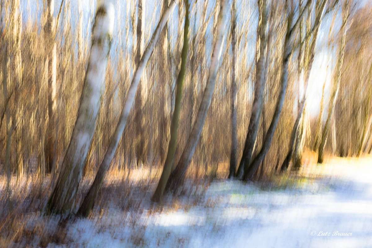An ein Gemälde (die Wirkung ist ein eher zufälliges Experiment-Ergebnis) von lichten sonnigen Schnee-Birkenwäldern in Russland erinnern diese Bilder.