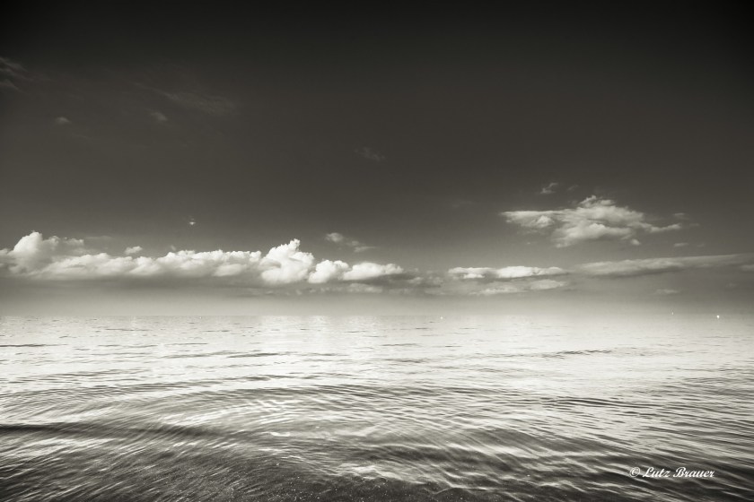 Man hört das Wasser fließen, rauschen, glucksen..Wasser und Himmel wie eines, ohne Trennung, und die Wolken so dicht darüber. Ein Moment der Ruhe, Stille…