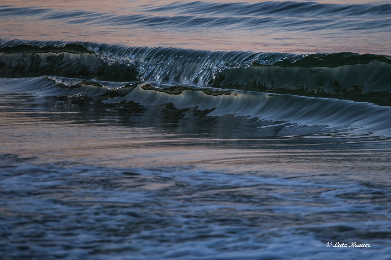 vor zwei Tagen war noch Sturm, jetzt ist es fast windstill. Eigenartig die Farben dieses Abends und die gläsern rollenden kleinen Wellen.