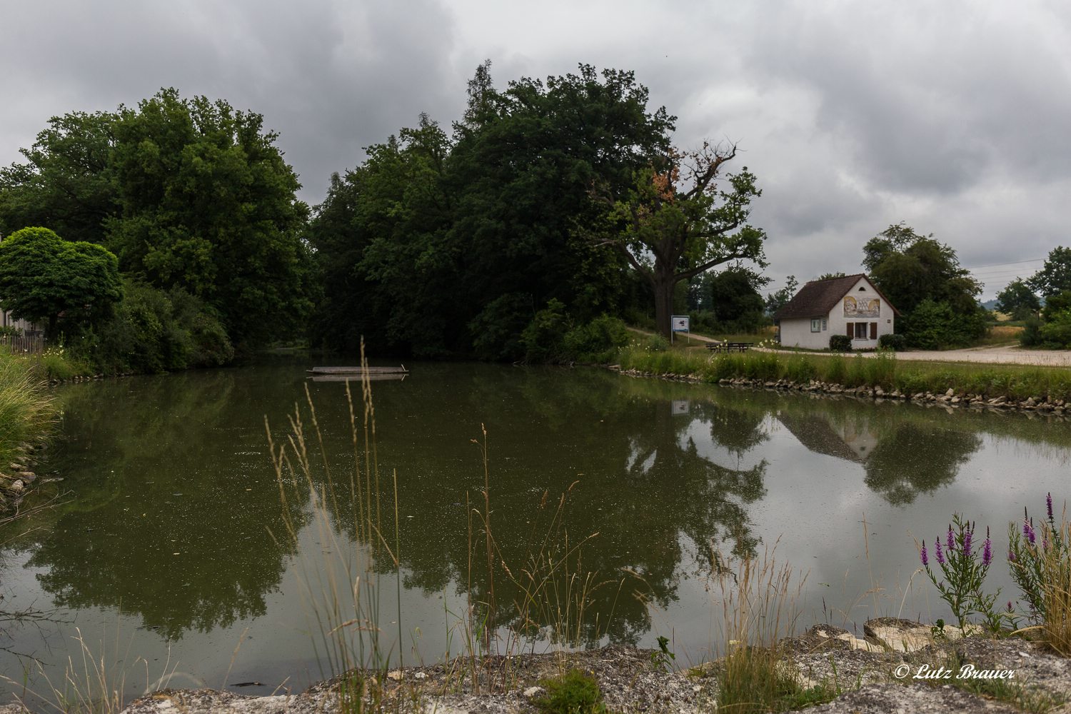 Am Karlsgraben bei Treuchtlingen treffen wir das österreichische Paar. Kurzer netter Gruß, sie sind etwas früher als wir hier gewesen und radeln schon weiter, wir schauen uns noch kurz um. 793 wollte Karl der Große einen Kanal graben lassen zwischen der Schwäbischen Rezat, die zum Rhein fließt und der Altmühl, die zur Donau fließt. Ein kluges Vorhaben, wie auch immer man schon damals feststellte, dass geogaphisch hier dafür die beste Stelle sei, das scheiterte aber leider.