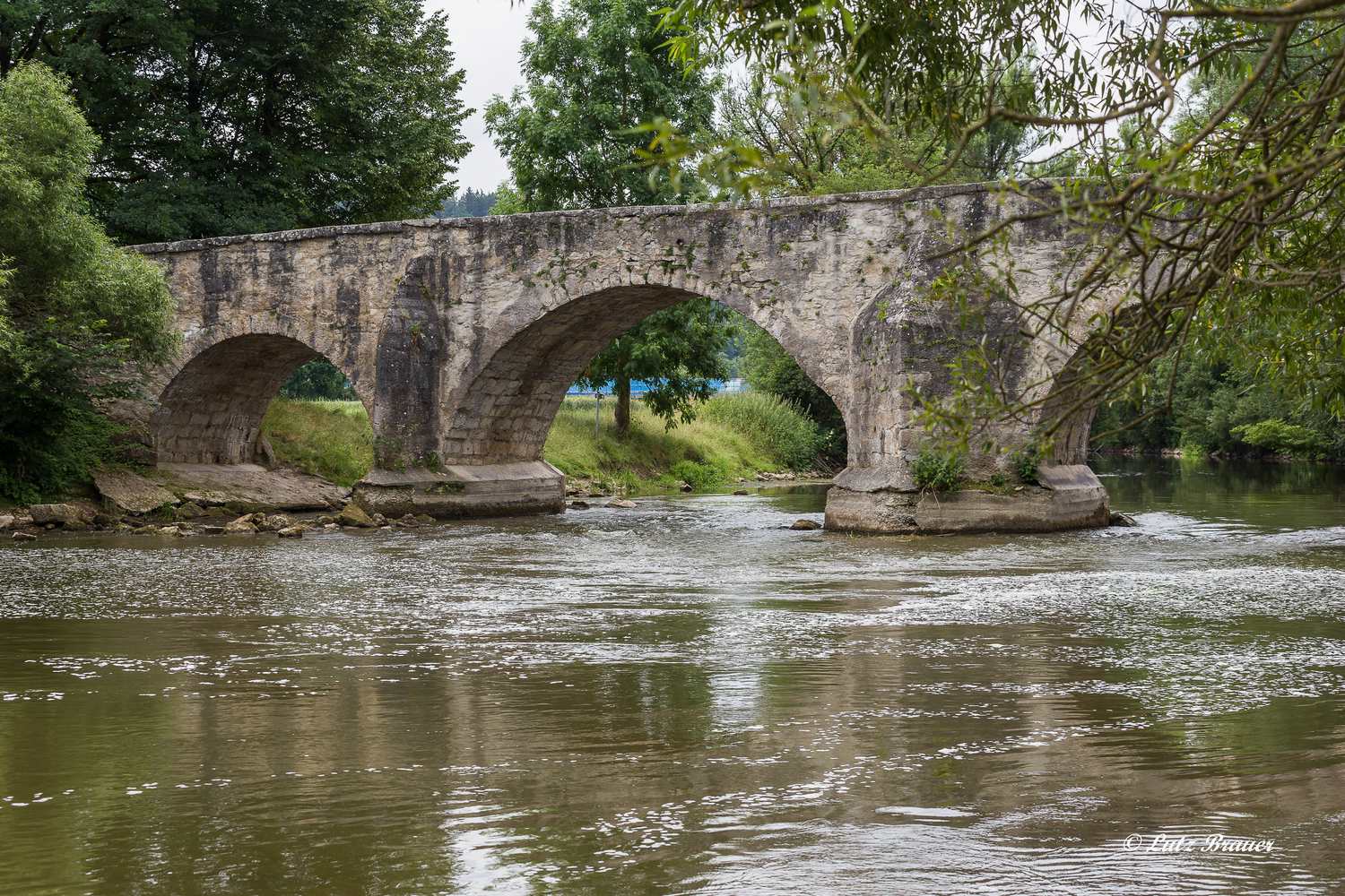 Also bleibt uns an einer mittelalterlichen Brücke nur eine Rast mit Power-Riegeln übrig. Aber gut so, dass wir wenigstens die im Magen haben, denn auf den letzten Kilometern bis Kipfenberg lauert noch ein heftiges Auf und Ab im Wald am Fluss. Gegen 17 Uhr kommen wir an der Pension beim Metzger Neumeyer an. Alles ist gut – und trocken, der angesagte Regen fällt also auch hier aus, es wird langsam sogar wieder sonnig, gibt offenbar auch keine Gewitter mehr heute.