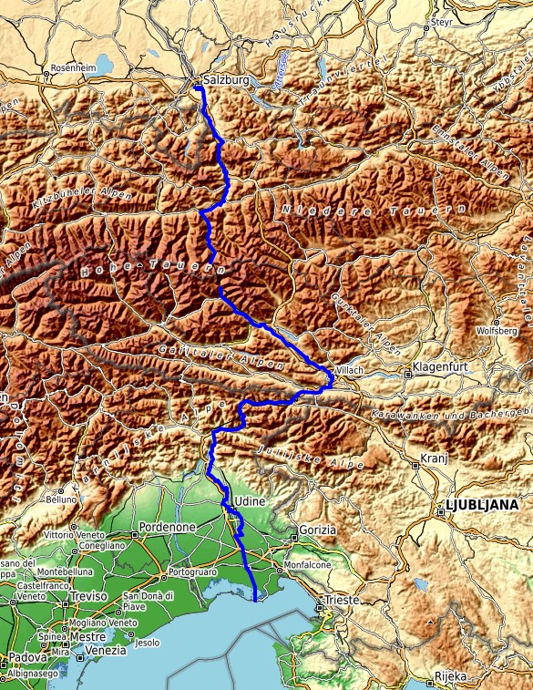 Alpe-Adria 2022 – die Alpen per Rad, von Salzburg nach Grado (bis vor Kurzem noch nie gehört) die Logistik, also Unterkünfte und Gepäcktransport erfolgen organisiert, wir fahren individuell mit Leihrädern.