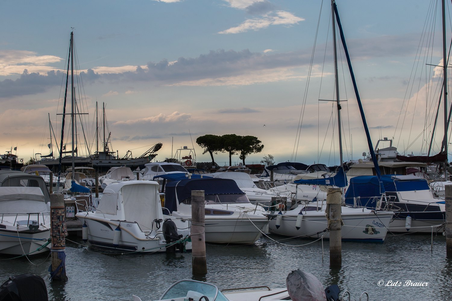 Bei uns bleibt es noch eine Weile trübe, wir radeln, da der Regenradar nichts weiter Regnerisches meldet, mit den winzigen Hotel-Leihrädern durch und um Grado, versuchen, auf holprigen Wegen die Lagune zu erreichen, was erst im zweiten Versuch gelingt, die aber leider bei dem Licht auch keine nennenswert exklusiven Motive bietet.