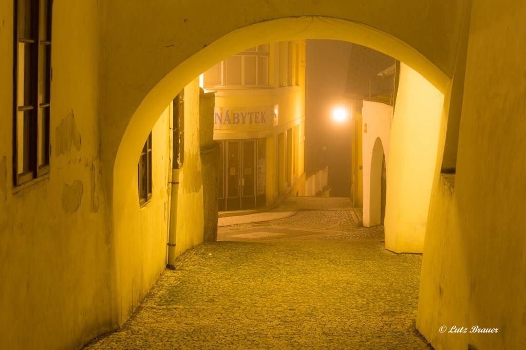 Gut gesättigt haben wir nun wieder einen Nerv für die eigentümliche Stimmung in den menschenleeren Herbstabend-Gassen des Städtchens an der Eger.