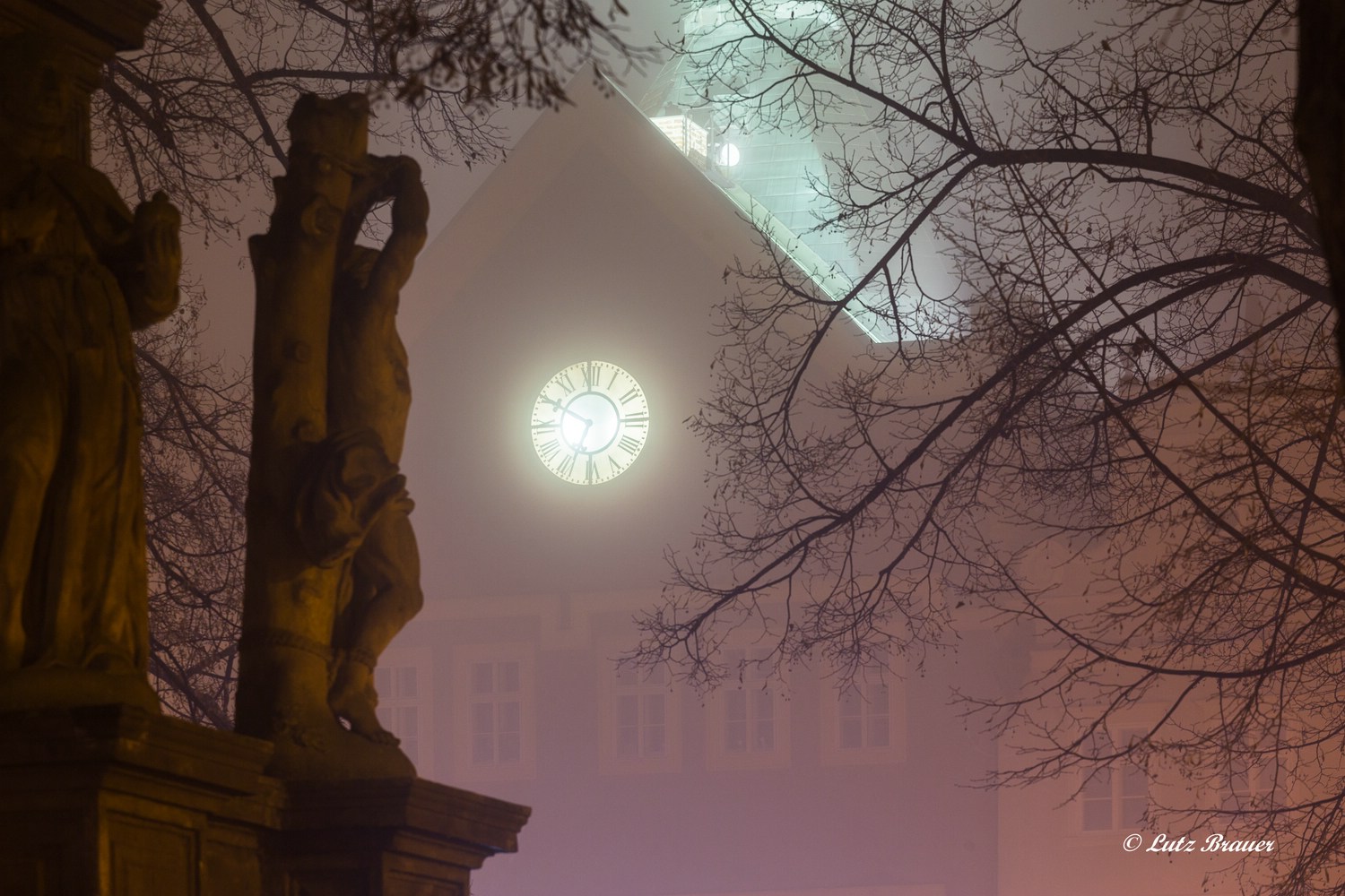Die stillen Altstadtgassen sind das Eine, die von Scheinwerfern angestrahlten Gebäude das andere „Wunder“, welche erst im dichten Nebel ihren wahren Reiz entfalten.