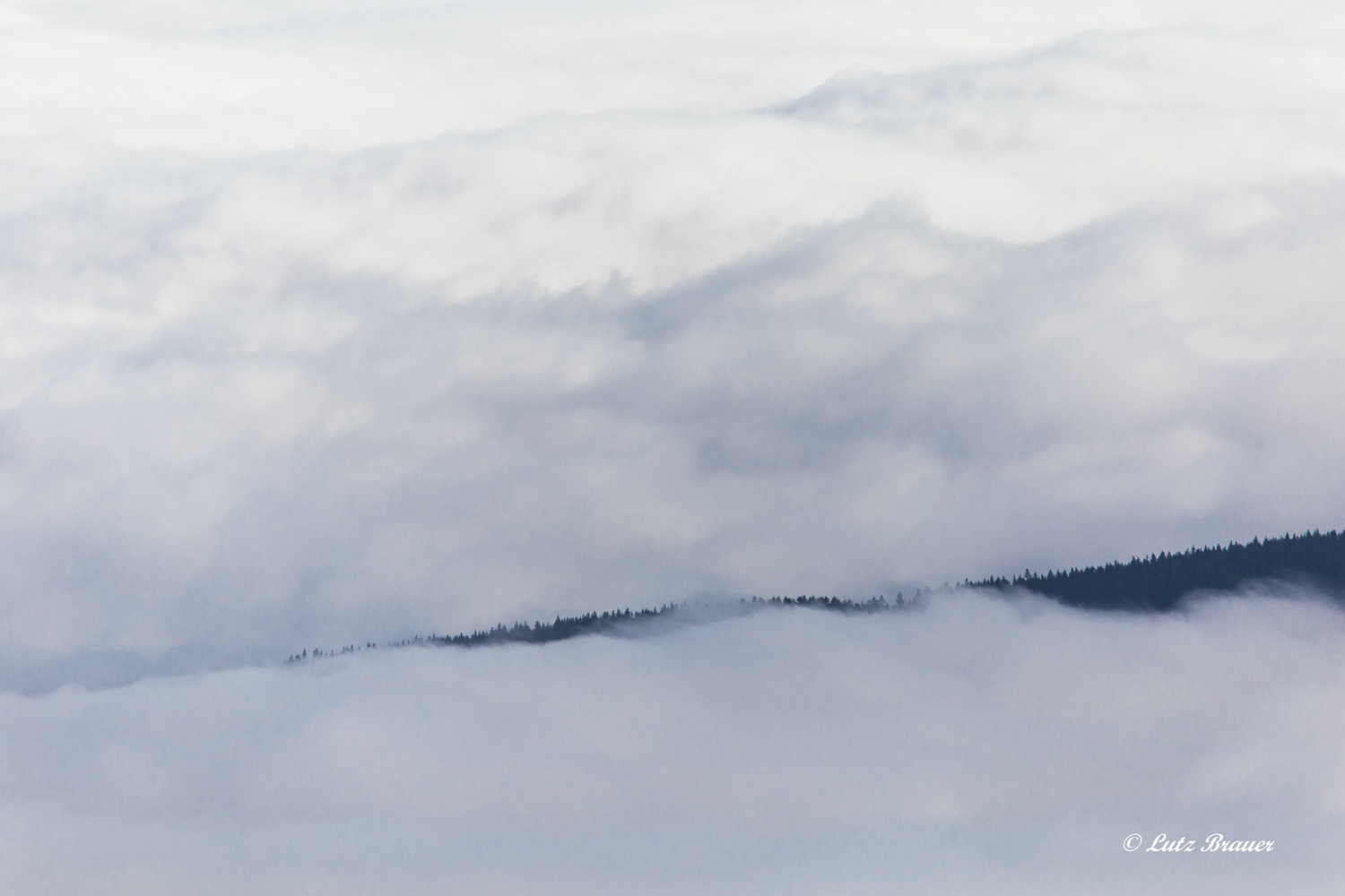 Der Anblick der Inseln im wogenden Nebelmeer über Böhmen lässt eher tiefe Stille vermuten.
