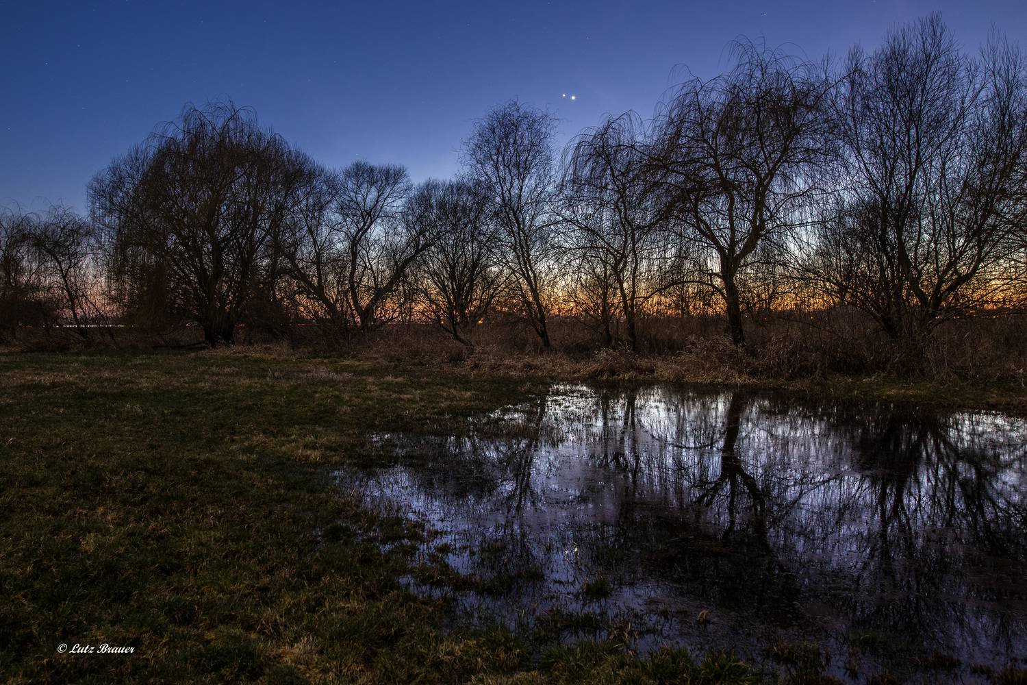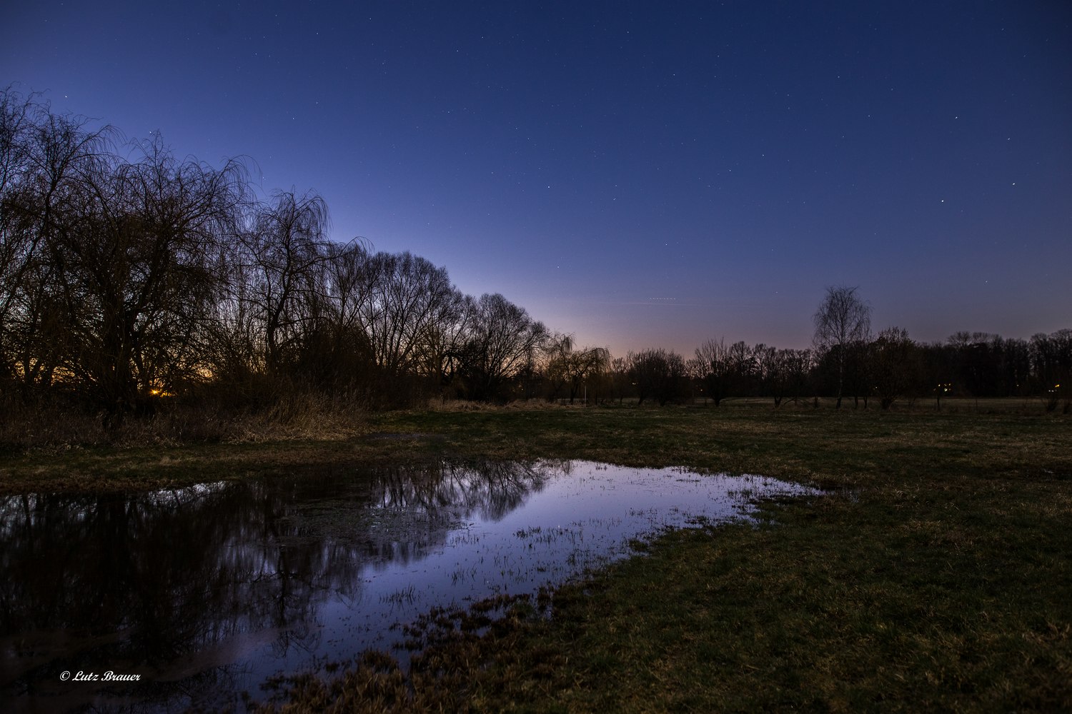 Eine kleine Abwechslung zum gestrigen Abend. In den Wiesen stehen ausreichend große Pfützen, die eine interessante Kulisse um Einiges bereichern.