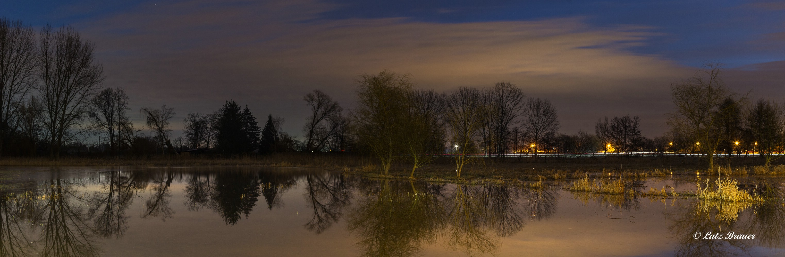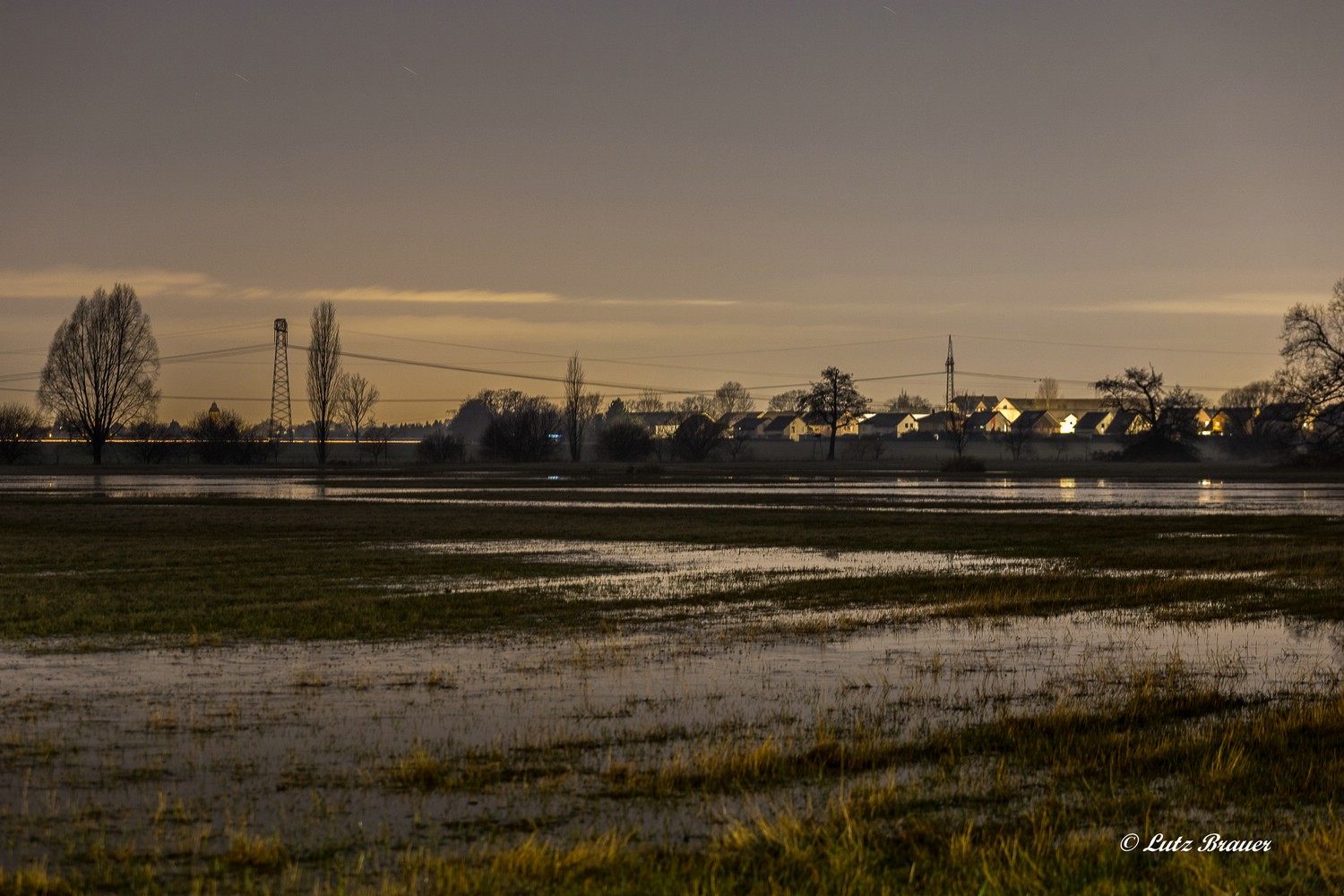 Gestern noch, auf dem Weg zum Bahnhof waren in der Dunkelheit links und rechts des Asphalts, der sich wie ein Damm oder Deich anfühlte, geschlossene Wasserflächen zu erahnen.