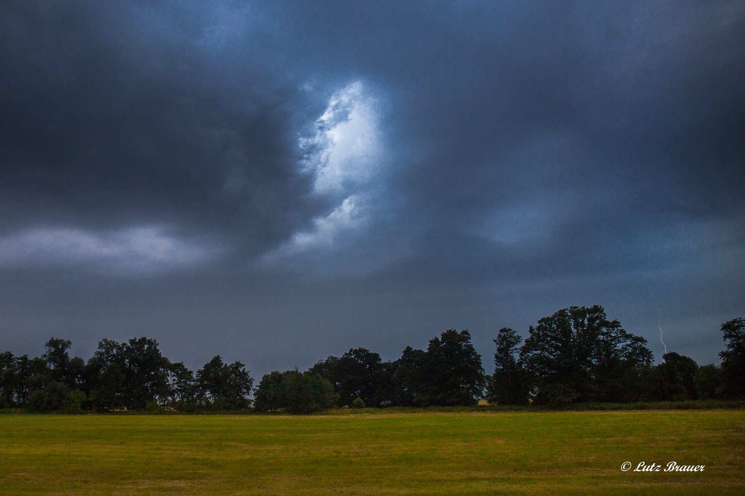 Die Blitze kommen näher, noch ein Foto, aber nun, schnell, schnell aufs Rad und zurück, die Geschehnisse von den Elbwiesen in Dresden sind in allgegenwärtiger Erinnerung. Nichts riskieren, weg hier!