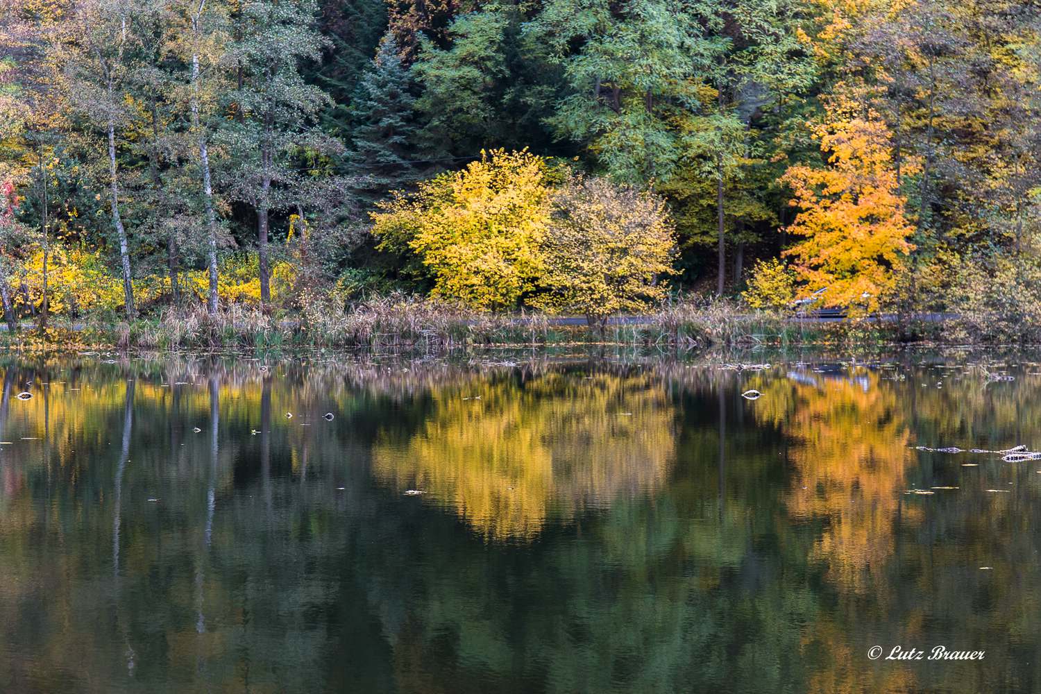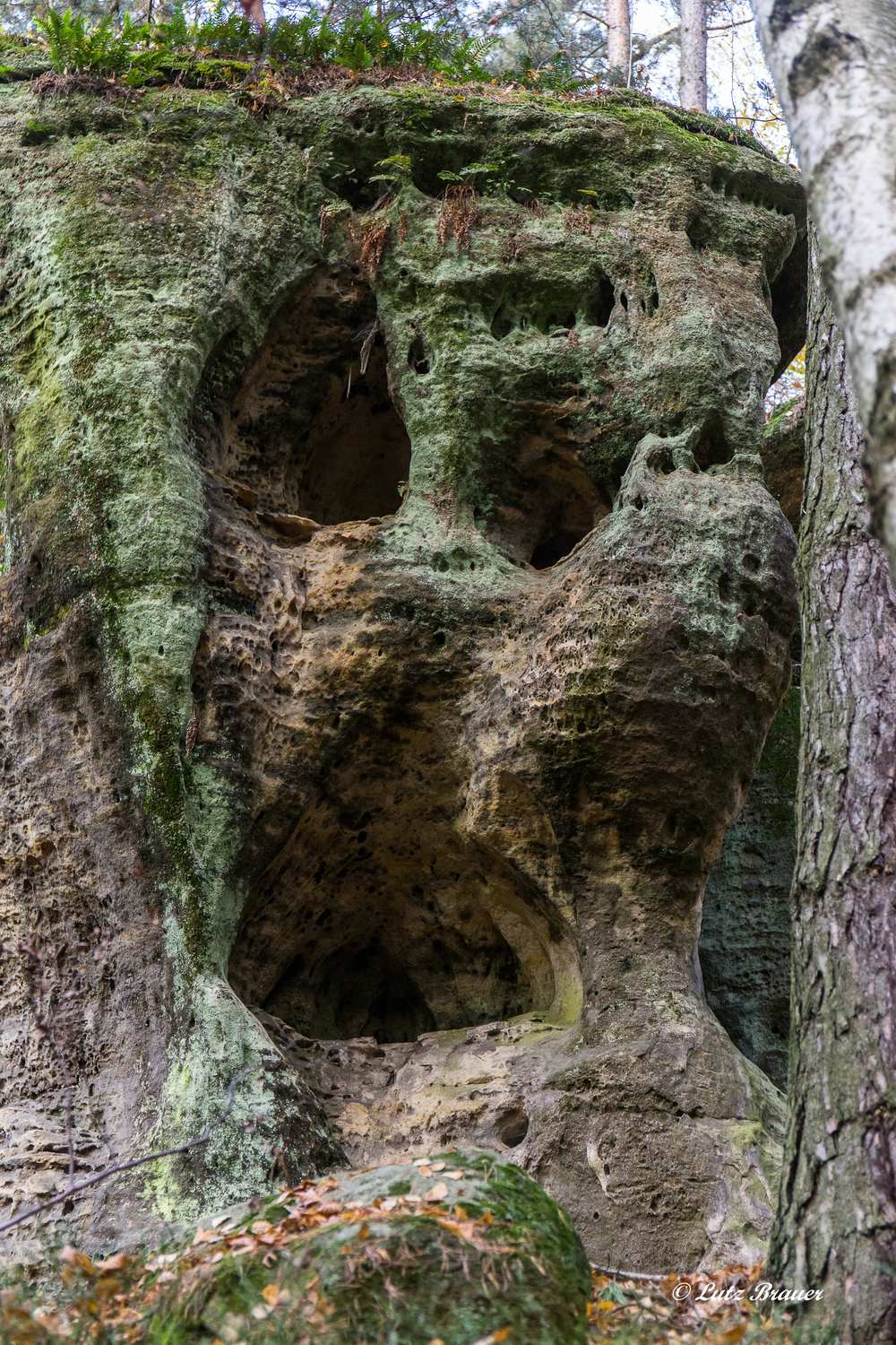 Wäre da nicht der tiefe Einschnitt eines Tales beim Dörfchen Kokořín. Und dieses bietet erstaunliche Bilder aus dem Sandstein – Sächsisch-Böhmische Schweiz en miniature. Dazu ein Flüsschen aufgestaute Teiche, herrliche Spiegelungen auf dem stillen Wasser, bunte Herbstwälder und das kleine Naturwunder der Pokličky, Sandsteinfelsen mit einer Art versteinerter „Kartoffelpuffer“ oder „Deckel“ obendrauf. Sehr sehens- und empfehlenswert.