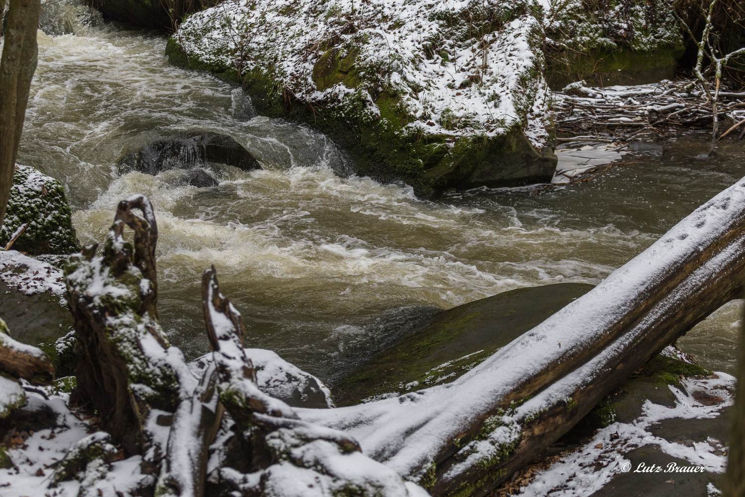 Kaum vorstellbar, dass oben an der Kante der Steinbrüche und Felswände, nicht einmal 100 m entfernt, die „Zivilisation“ beginnt. Dazu verfallene Mühlen, ein altes Elektrizitätswerk, meterhohe Wehre, über die weißschäumend die ordentlich Wasser führende Wesenitz in die Tiefe stürzt, halten zum Betrachten auf.