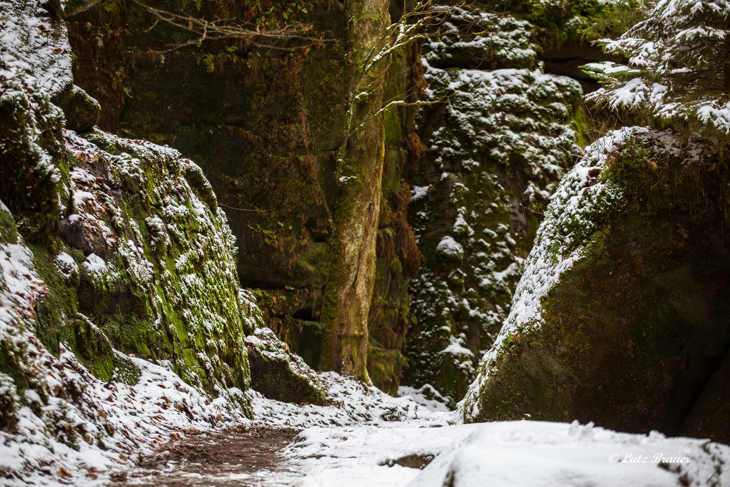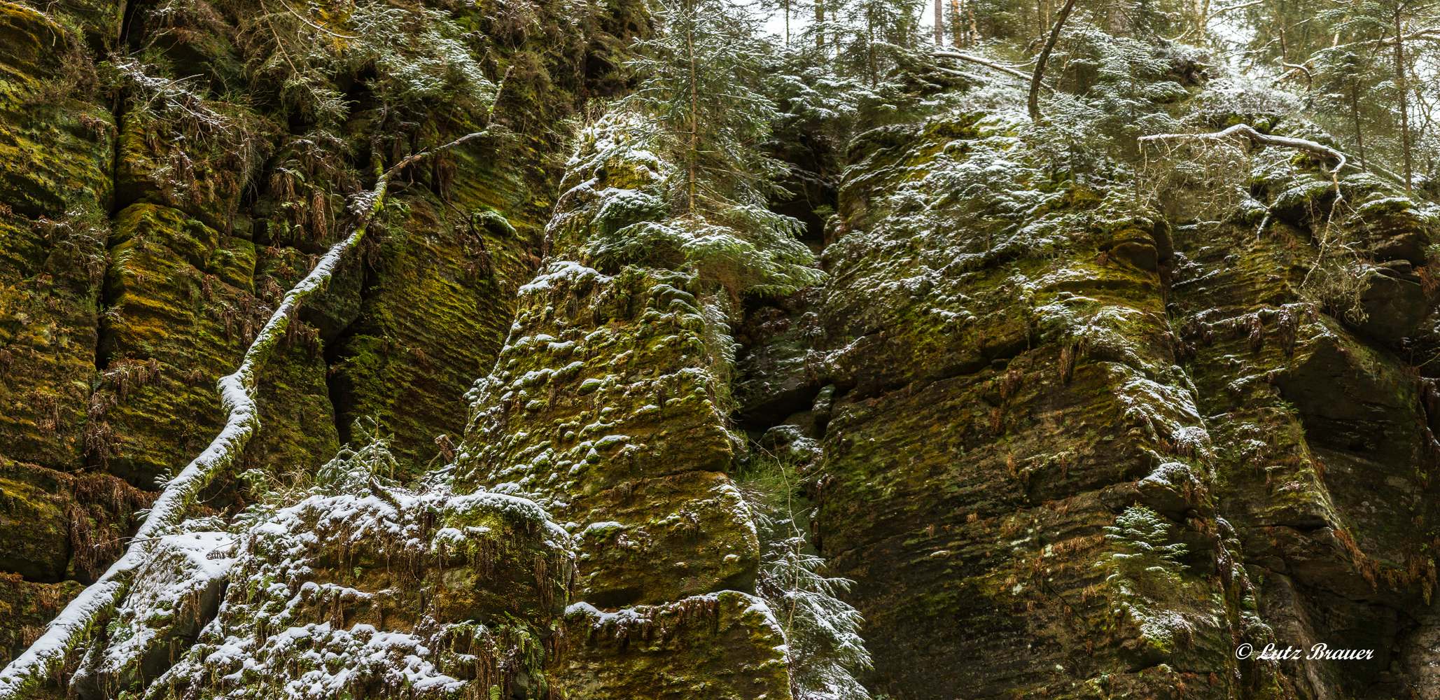 Wir folgen Nicolais Wegweiser und steigen bei Uttewalde (Ottowalde) wieder hinab in den Grund. Der Uttewalder Grund zählt unserer Meinung nach zu den wohl romantischsten und wildesten Schluchten der Sächsischen Schweiz.