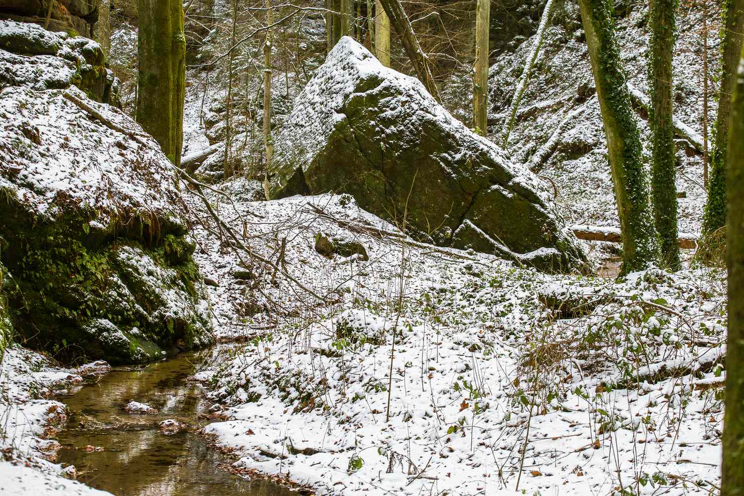 Der Weg hinunter durch die Schlüchte bis Wehlen ist die Kür, auch hier sind noch einige Felsblöcke zu finden, welche in C.D. Friedrichs Skizzenbüchern auftauchen und nachfolgend Eingang in seine Gemälde fanden.