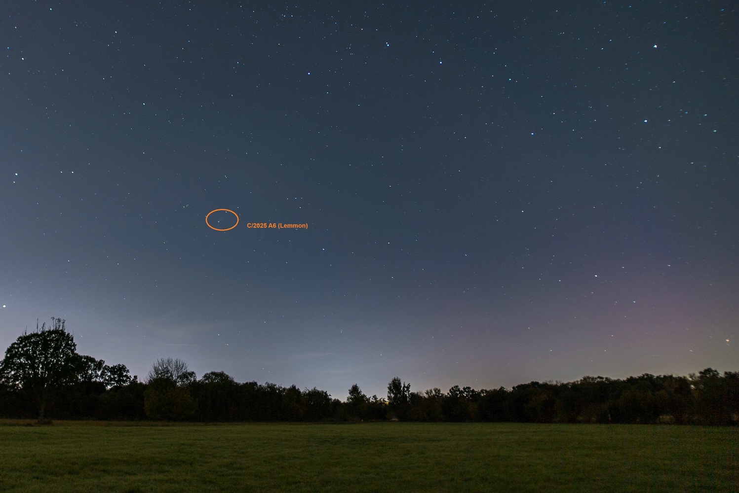 So geschieht es auch im Herbst 2025, als über die einschlägigen Medien der „Herbst-Komet“ C/2025 A6 „Lemmon“ angekündigt wird. Bei den Liebhabern derlei Erscheinungen bricht sofort die entsprechende Aufregung und Vorfreude aus, da werden Berichte, erste wunderbare Fotos usw. gezeigt und studiert und schließlich steht man selbst irgendwann, als laut Prognose eine gute Sichtbarkeit des Himmelskörpers angezeigt wird, wieder einmal draußen in der Dunkelheit auf den Wiesen, visiert mit der Kamera die hoffentlich richtige Position an und wird tatsächlich fündig.