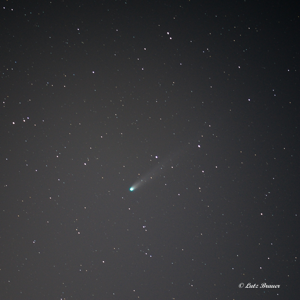Nun ja, ein grünes Pünktchen, das ist schon ganz schick und man kann sich den Erfolg, auch diesen Kometen aufs Foto gebannt zu haben, ans Revers heften und (ein ganz klein wenig) froh darüber sein.