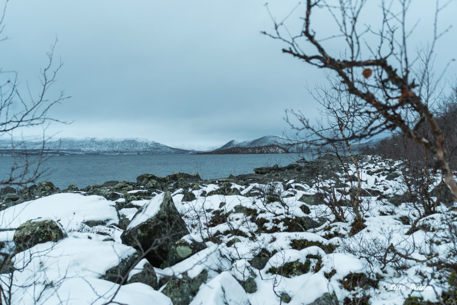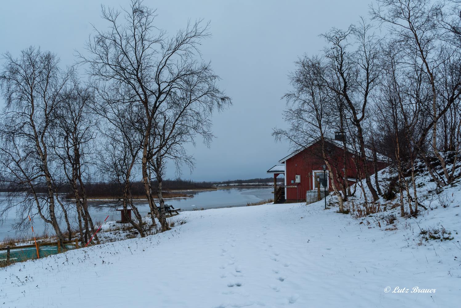 Kurz gesagt, die Fahrt ist anstrengend, denn das wunderschöne Lappland ist bereits schneebedeckt, die Flüsse und Seen schon halb zugefroren und ansonsten herrscht unter dem dicken Nebel- und Wolkengrau den gesamten Tag ein trübes Dämmerlicht.