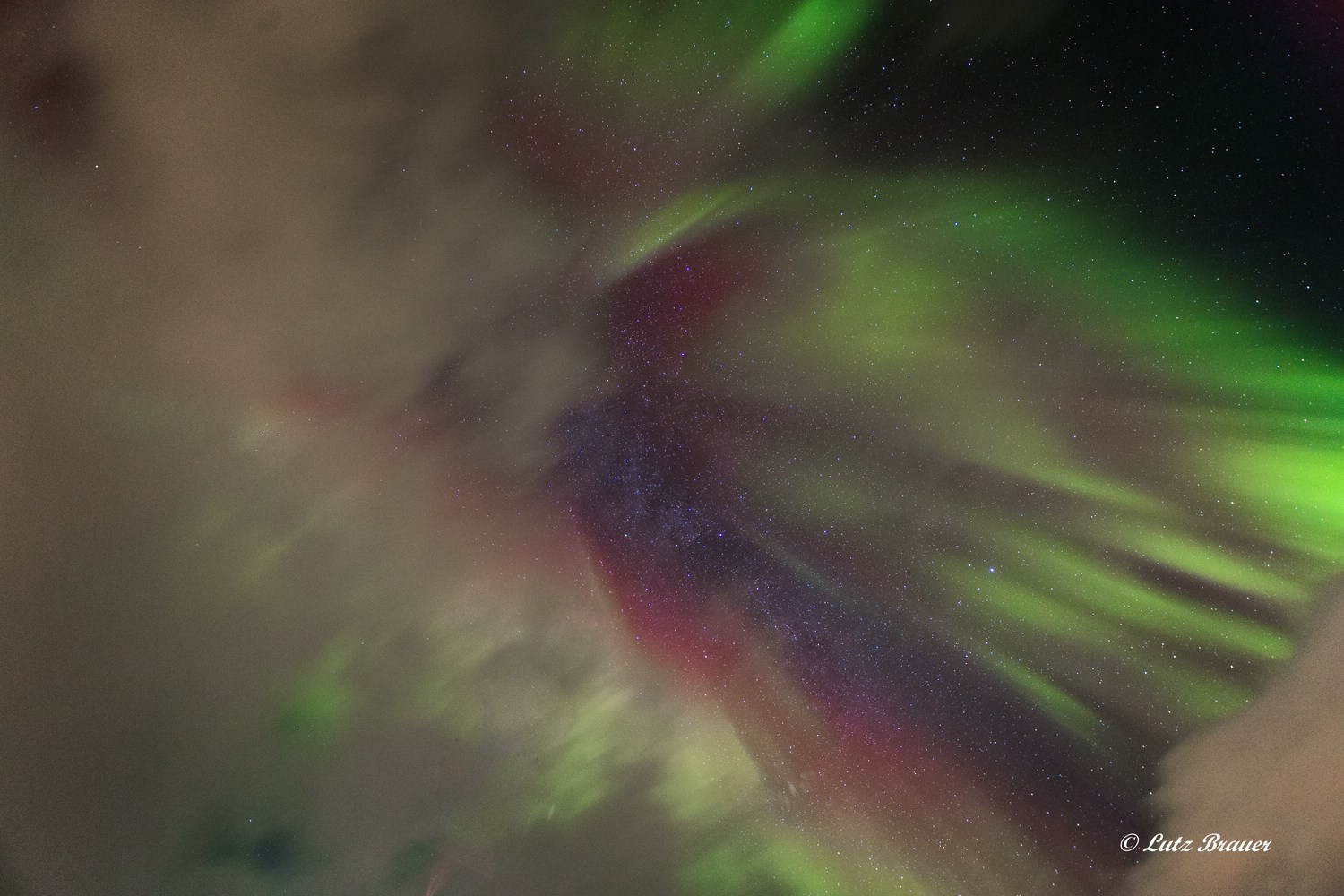 Und dann wird uns endlich endlich die ersehnte Show geboten, stundenlang von West nach Ost wehen die Polarlichter, wehen, erstrahlen, verblassen, „explodieren“ über uns, fallen strahlenförmig herab…
